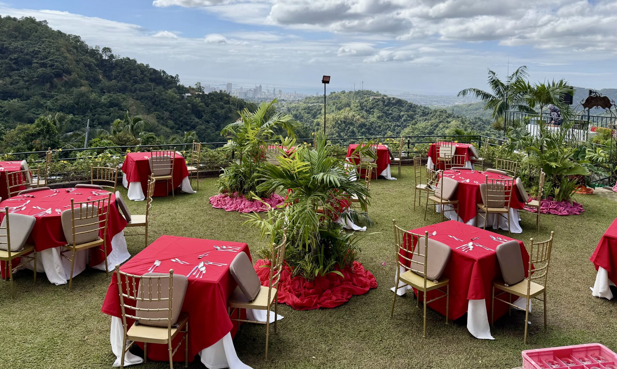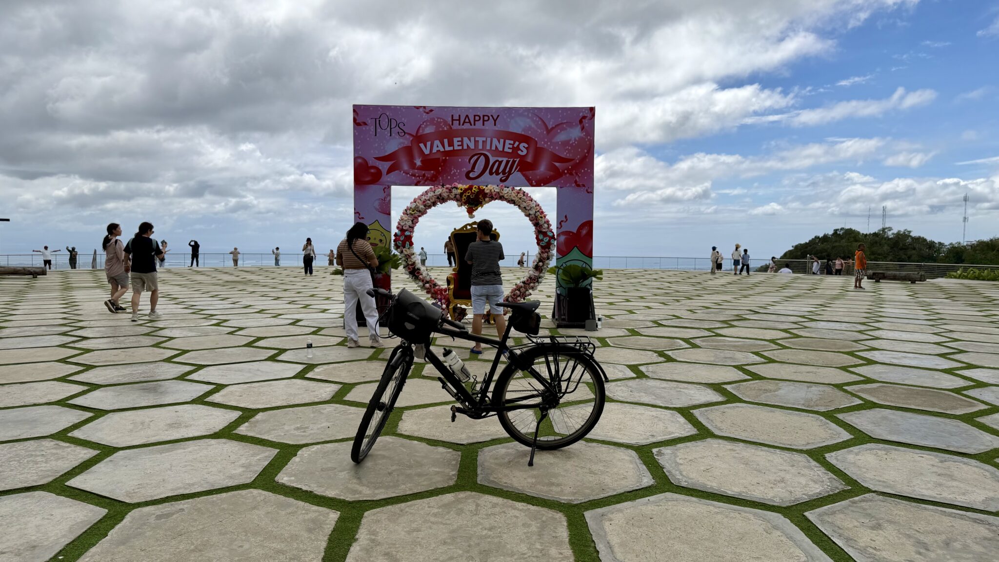 Bij de koffie wordt ons ‘Happy Valentine’ gewenst. Het hele terras is al gedekt met rode tafelkleden en servetjes in hartvorm. Ook langs de weg zien we veel verkopers van bloemen en hartjes, alles voor Valentijn.