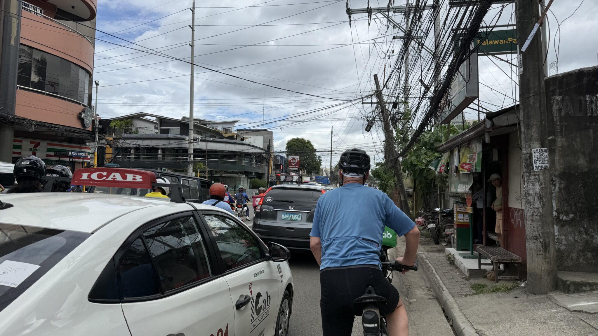 Het goede antwoord op de vraag waar je fietstassen kunt vinden is natuurlijk Decathlon. In Cebu zijn er zelfs twee. Daar gaan we vanmiddag heen. We gaan nu eerst een rondje fietsen. Het boekje heeft een leuke route naar een uitzichtpunt. En inderdaad dat betekent klimmen. Gelukkig had ik me niet voorbereid want ik weet niet of ik er dan aan begonnen was.