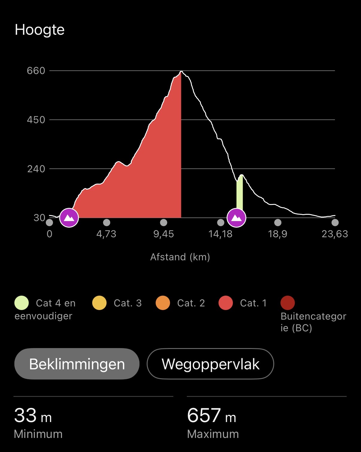 Het laatste stuk valt me zwaar. Carry rijdt alvast door. Hij belt om te zeggen dat hij boven is maar dat er geen goede plek om te eten is. Die top hou ik dan maar voor gezien.