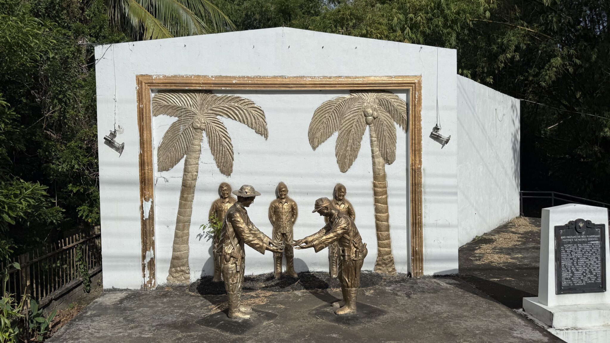 We hebben wind in de rug en het is rustig op de weg. We schieten lekker op. We passeren een monument dat het einde van de tweede wereld oorlog op de Filipijnen markeert. Een stukje geschiedenis waar we weinig beeld van hebben.