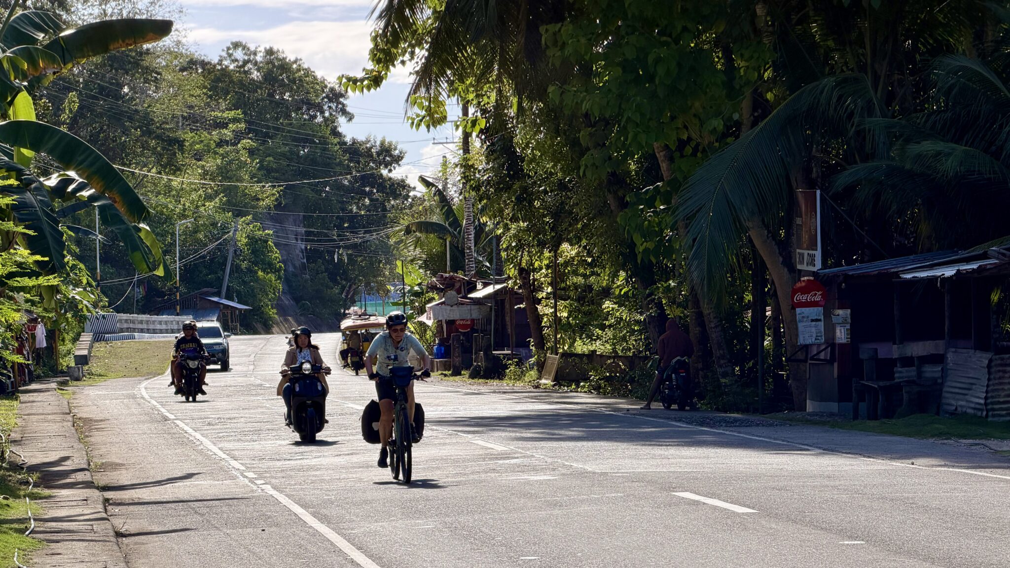 We stappen op. Ons boekje heeft heeft het over verkeersdrukte maar het valt alles mee. Het is bewolkt. Het straatbeeld wordt bepaald door de suikerrietoogst. Er staan lange rijen wachtende vrachtauto’s vol suikerriet en de weg ligt vol modder en afgevallen stukken riet.