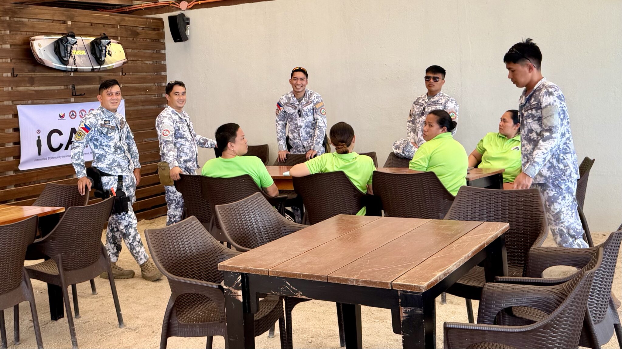 We lunchen bij de buren en zien een informatiesessie van de kustwacht. Het geheel is het best samen te vatten als kort en bondig.