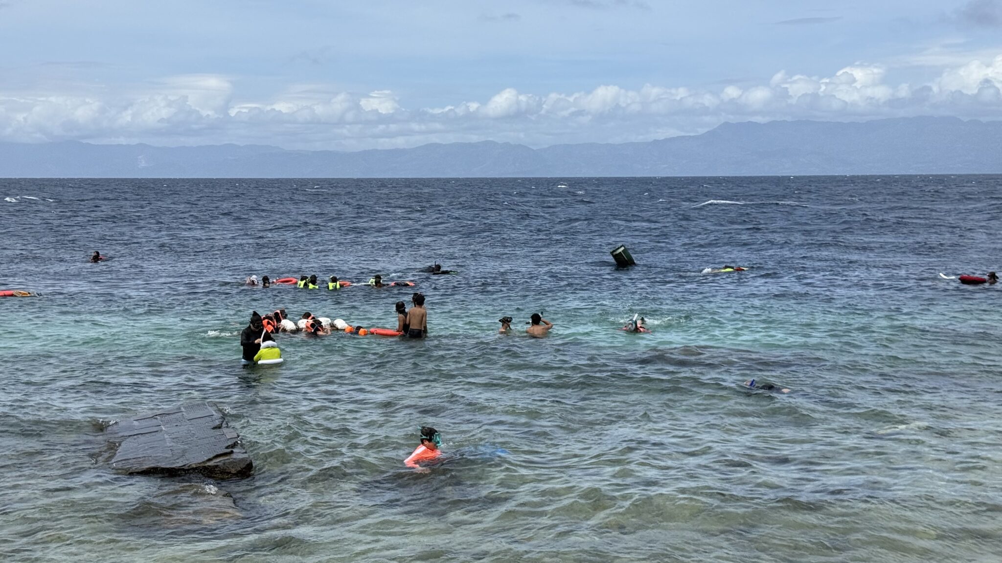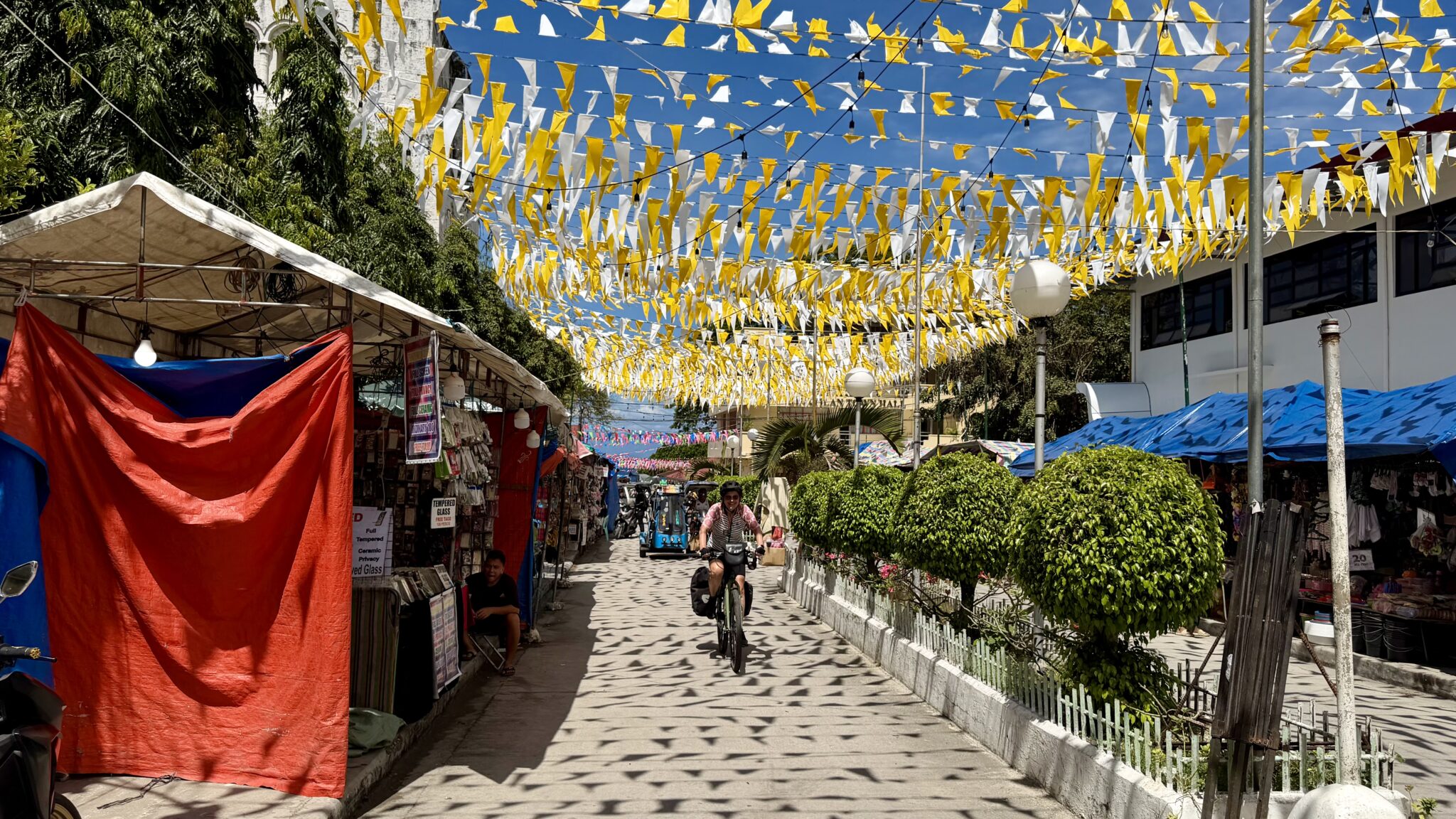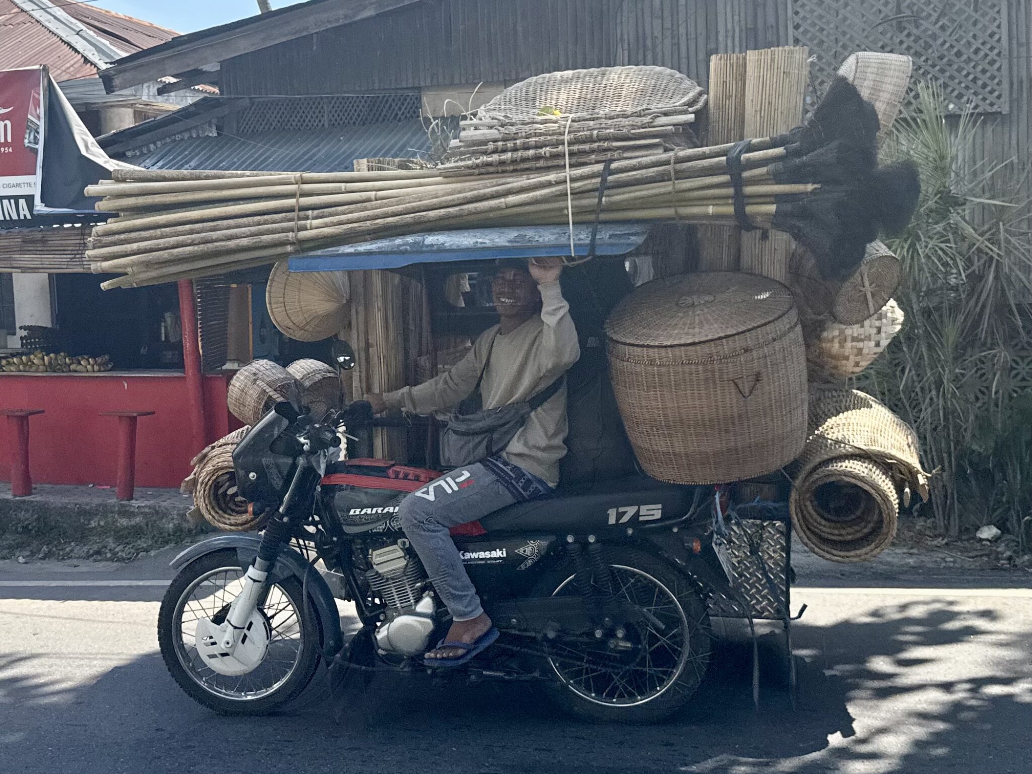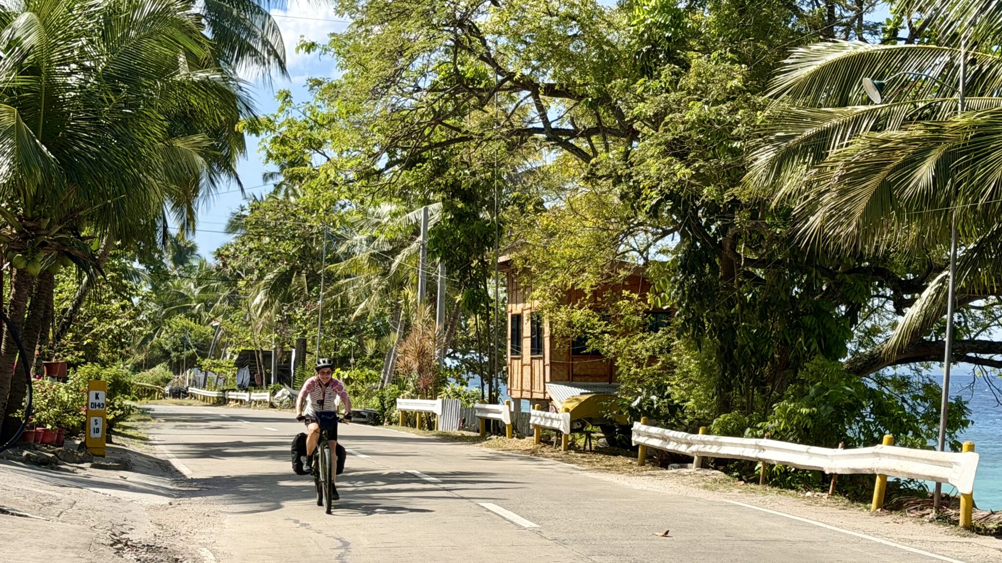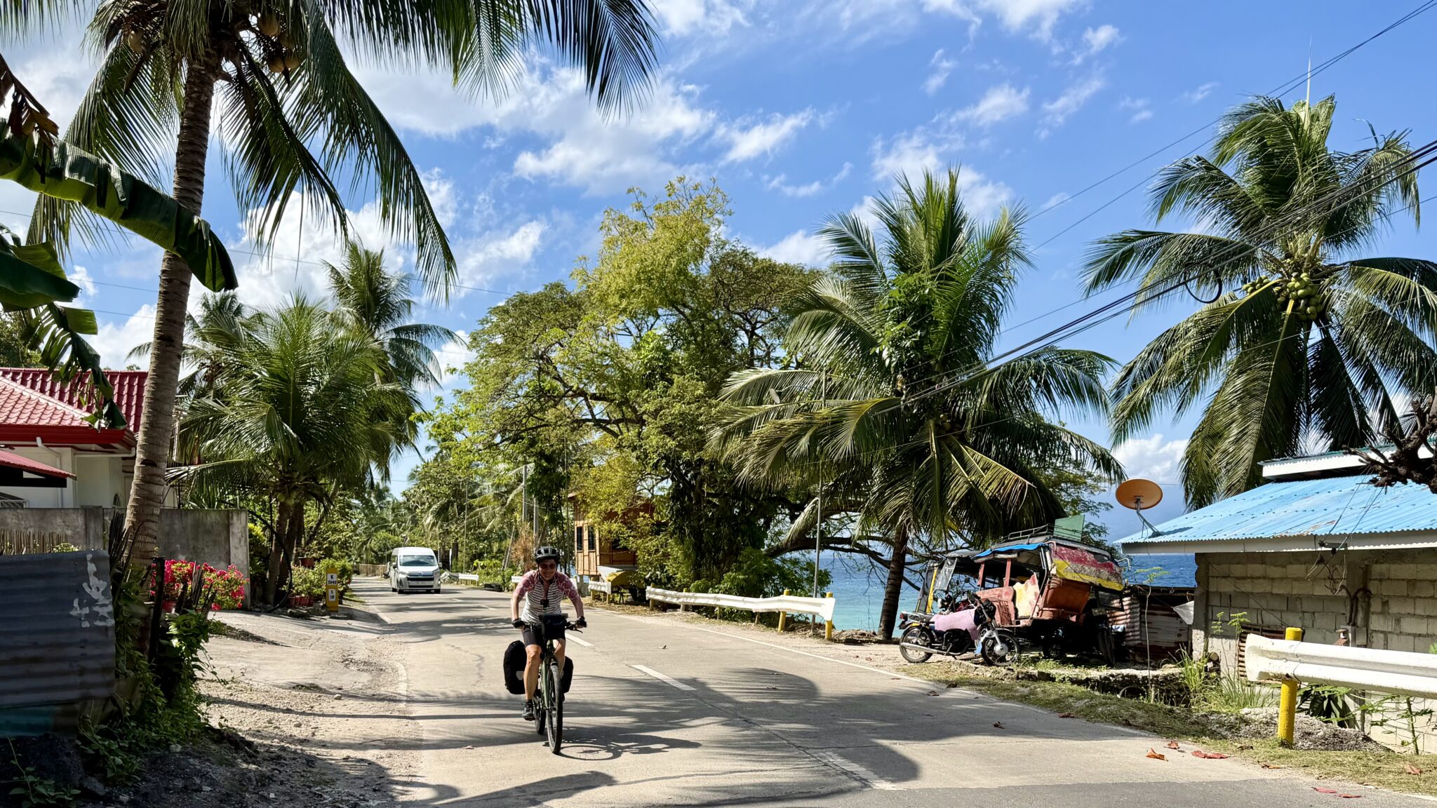 Vanaf de haven in Dumaguete fietsen we een klein stukje naar de haven in Sibulan. Hier is reizen met de boot een stuk eenvoudiger. Je koopt in een keer een kaartje voor jezelf en je fiets en dat is het. Ook de boot is eenvoudiger, eerlijk gezegd ziet het er wat aftands uit. De fietsen gaan op het dak en wij schuiven binnen aan op een van de volle banken.