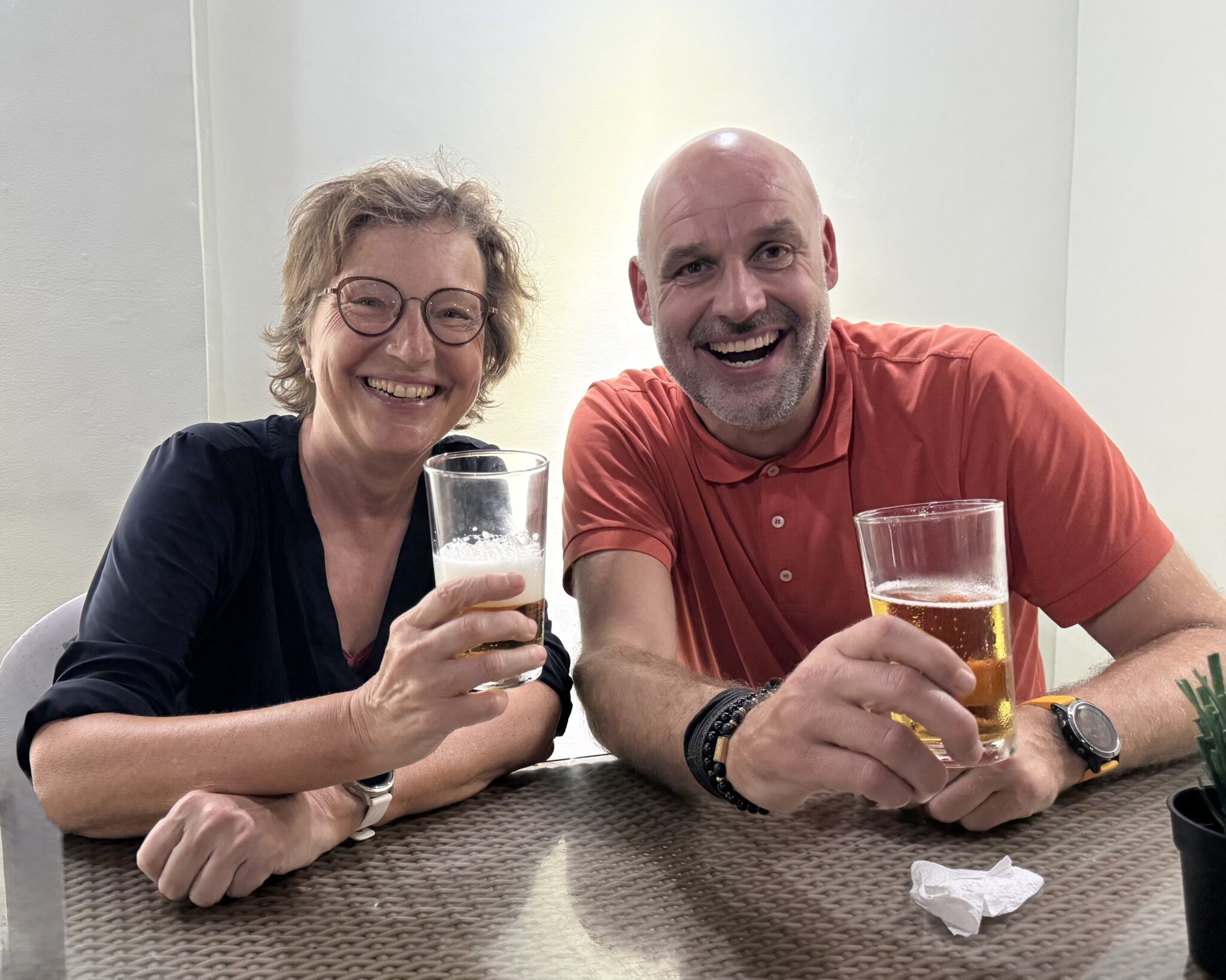 We ontbijten bij het café aan de overkant van de weg. Het is voor de hip en de happening, maar lieve help, wat moeten we lang wachten tot we wat te eten krijgen.